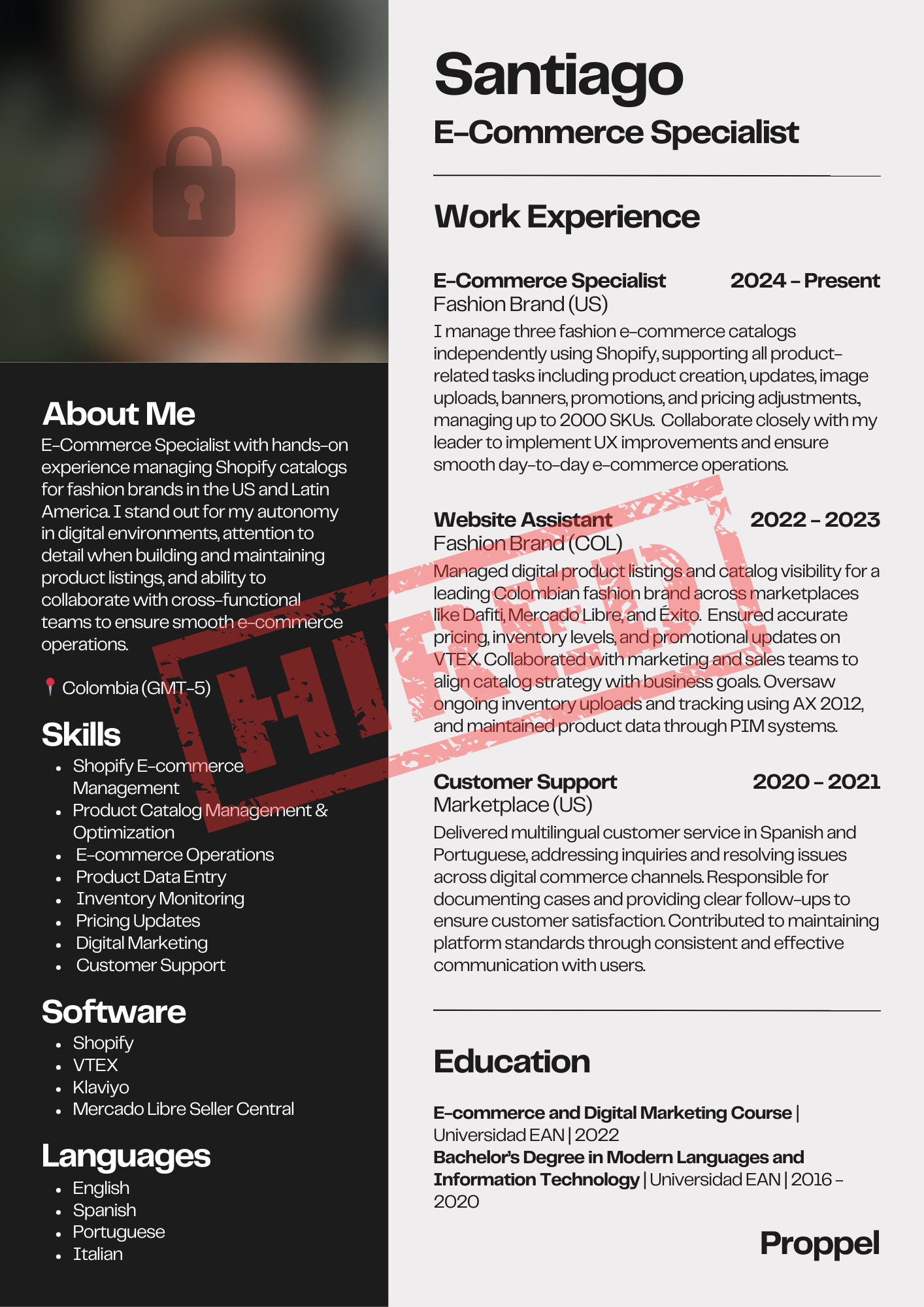 Santiago is a Junior E-Commerce Specialist with 2 years of hands-on experience managing Shopify catalogs for fashion brands across the US and Latin America. He’s skilled in maintaining product listings, ensuring accuracy, and supporting smooth online store operations.
